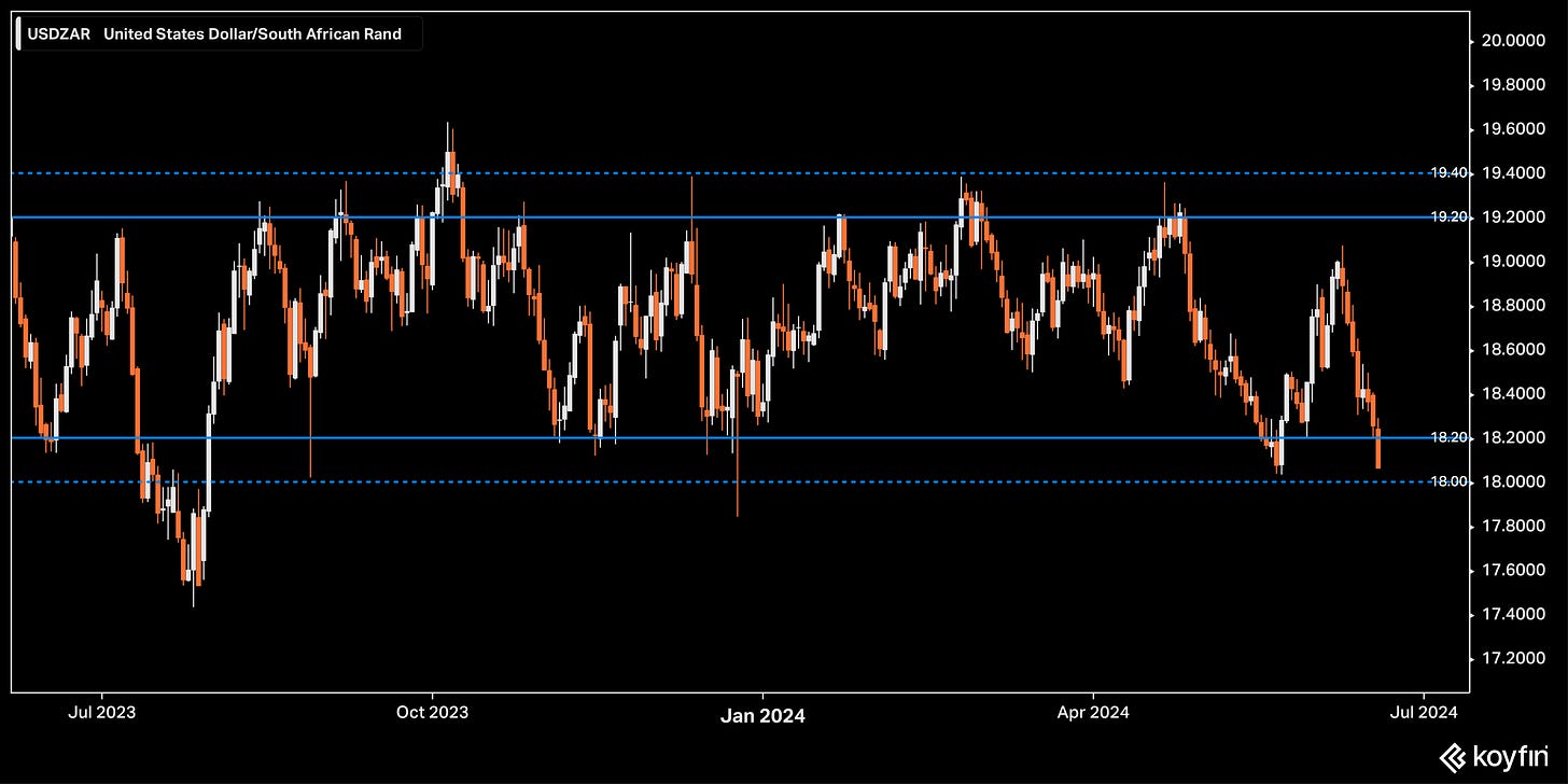 Emerging markets have offered many opportunities in recent months. Javier Milei’s election to President in November saw an economic turnaround in Argentina, driving its stock index (MERVAL) up 150% since. With the India elections done and dusted, the Sensex is back at ATHs and driving higher. Now, we have South African markets rallying, along with the SA Rand.