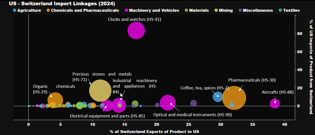 Some Swiss industries, particularly aircraft manufacturing and high-precision medical devices, are highly vulnerable to these tariffs. Coffee, optical instruments, and watchmaking, once cornerstones of the Swiss export market, are also feeling the sting. The impact of this tariff on Swiss businesses is already being reflected in the equity market. Major sectors, including industrials and luxury goods, saw significant sell-offs after the tariff announcement.