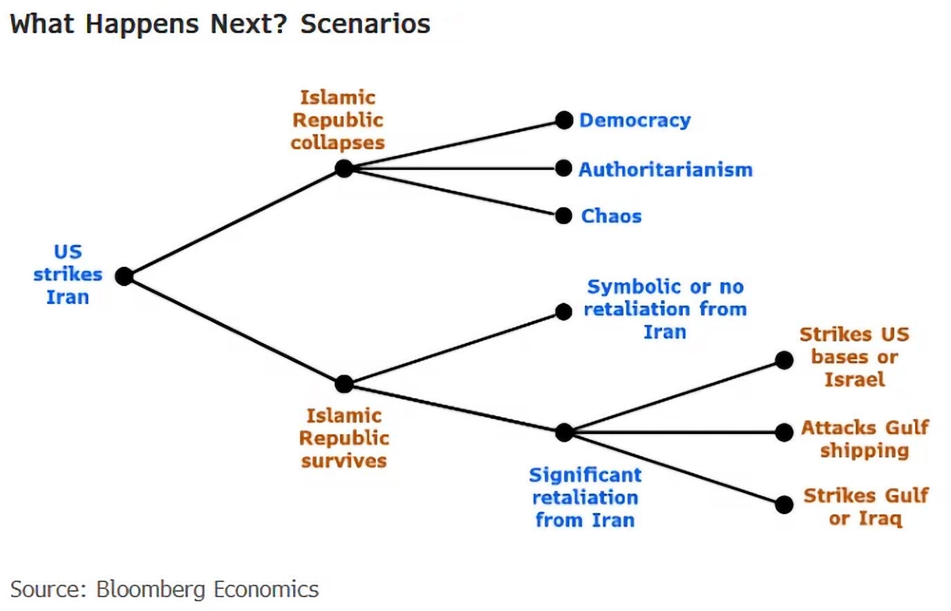 The tail risk of a survival of the regime, along with significant retaliation from the nation, can’t be ignored.