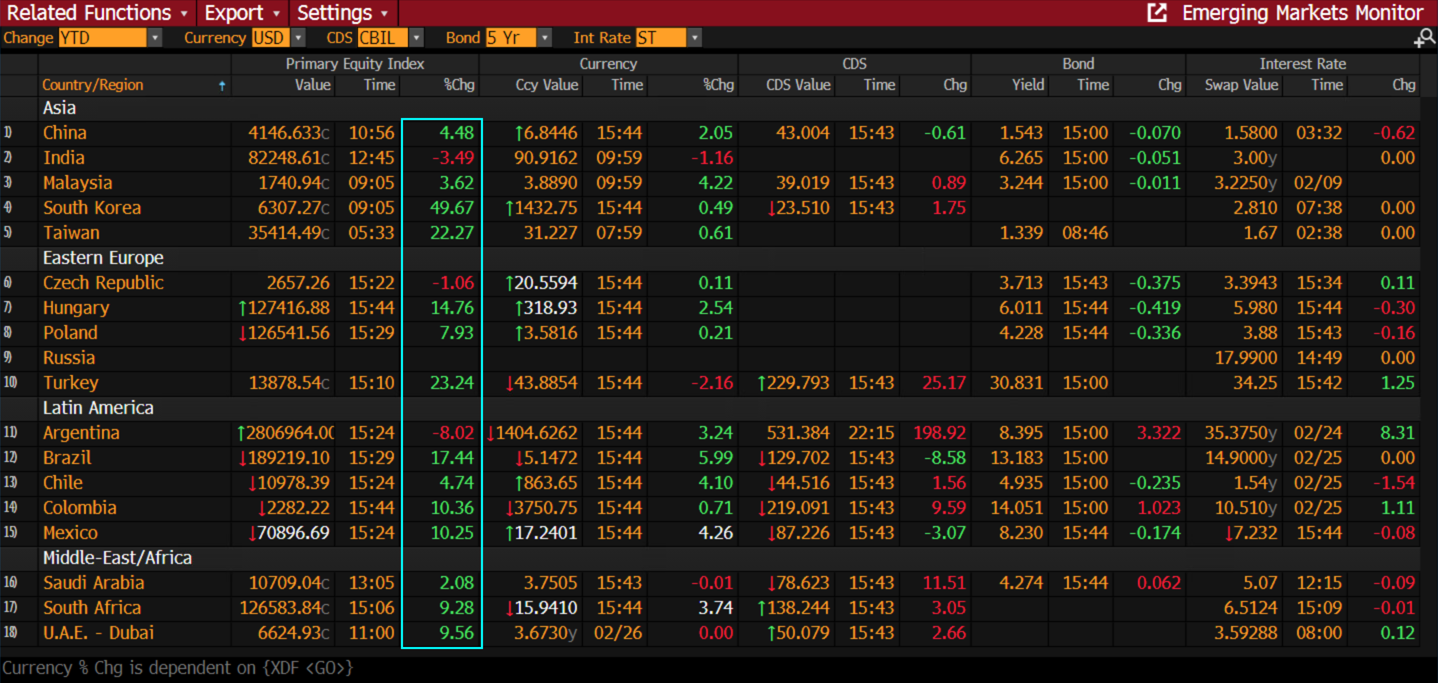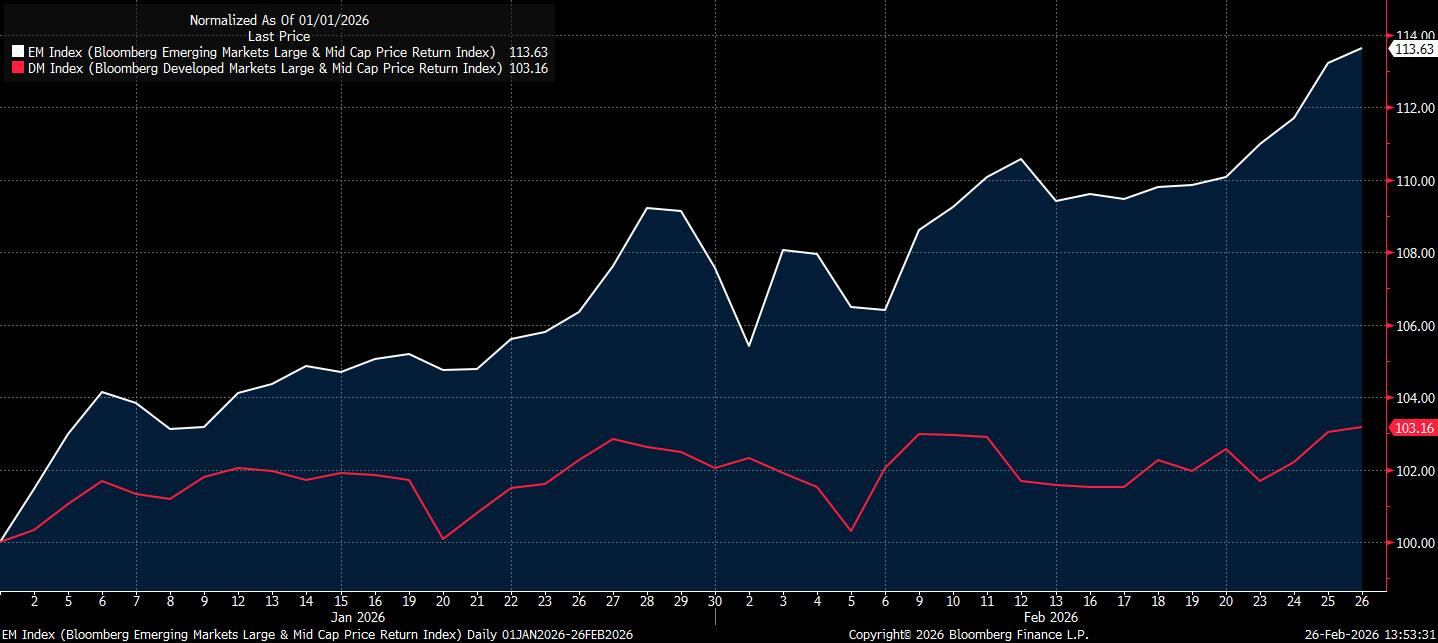 Emerging Markets have continued their standout start to 2026, and are worth a few comments as an update.