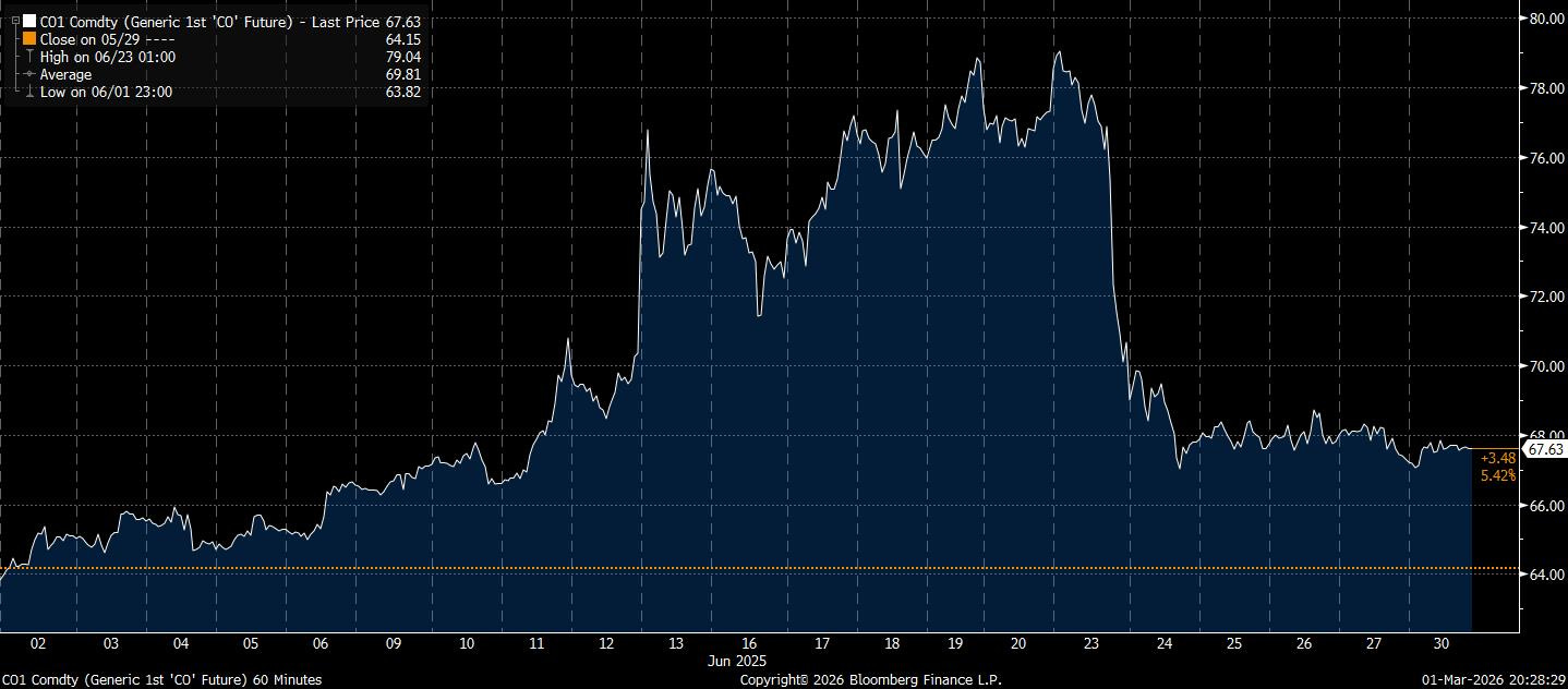 The price response during last year’s conflict provides a useful template. Brent spiked above $80, its largest rally in more than three years, only to retrace once it became clear that physical infrastructure remained intact.