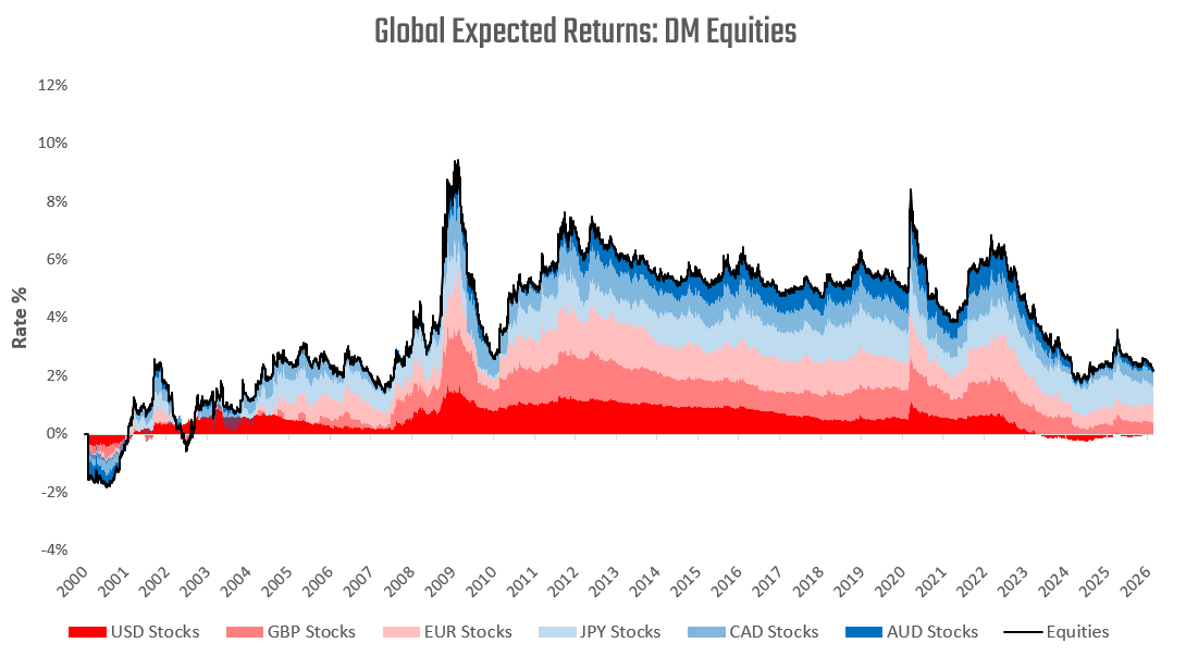 “US equities have experienced a multi-year valuation expansion concentrated in a narrow group of high-growth, high-duration technology companies. As valuations rise, forward earnings yields compress mechanically, reducing embedded expected returns even if growth expectations remain strong.” — Prometheus Research
