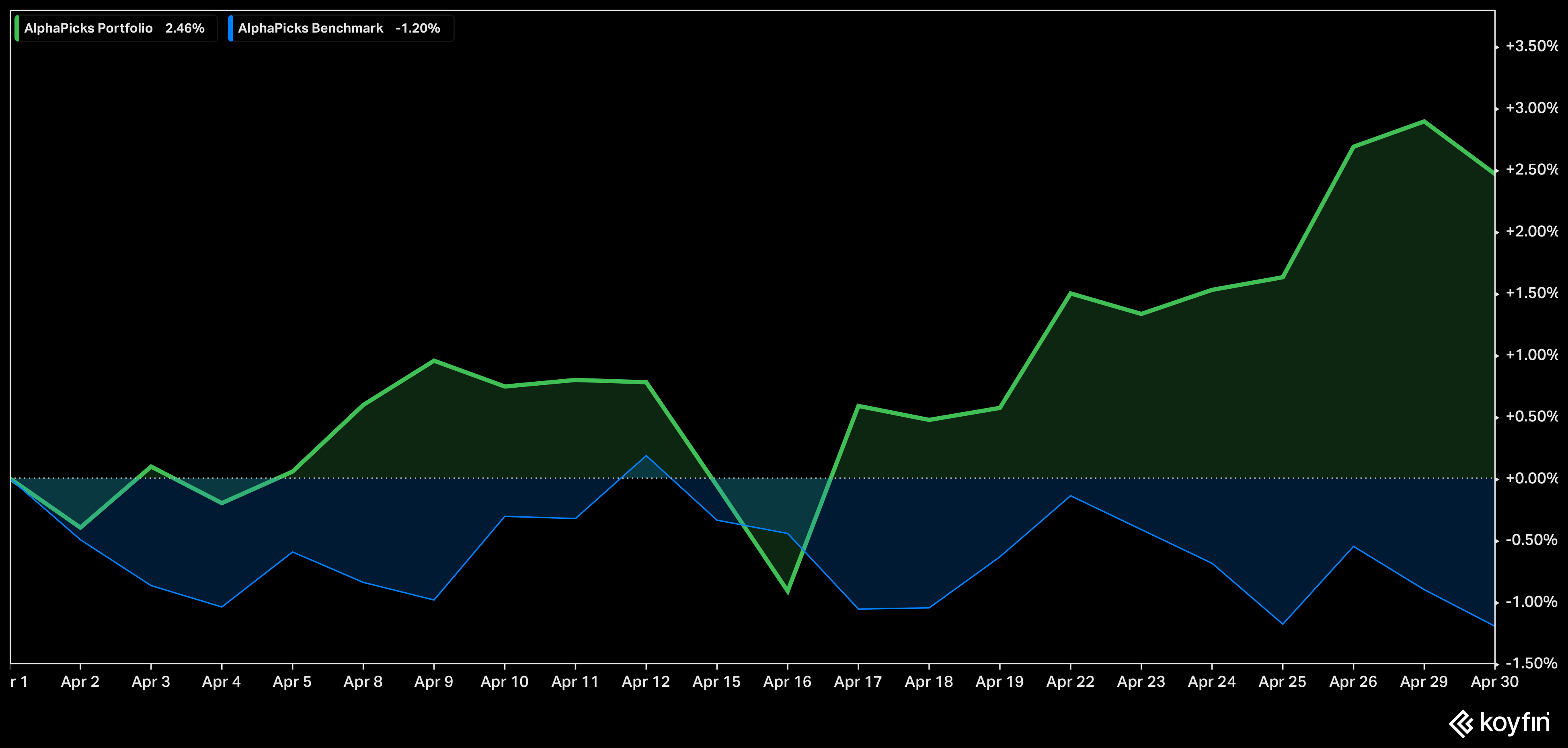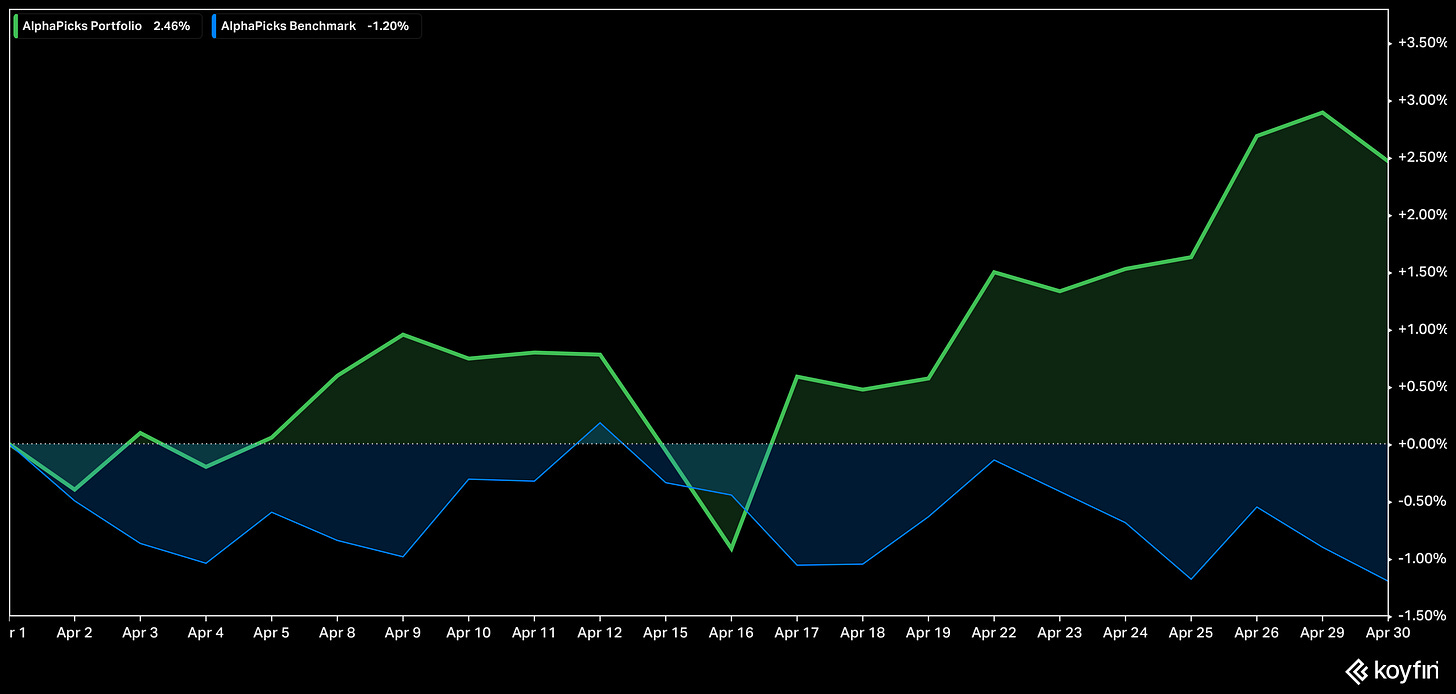 Our AlphaPicks Global Asset Portfolio gained 2.46% in April, beating the benchmark.