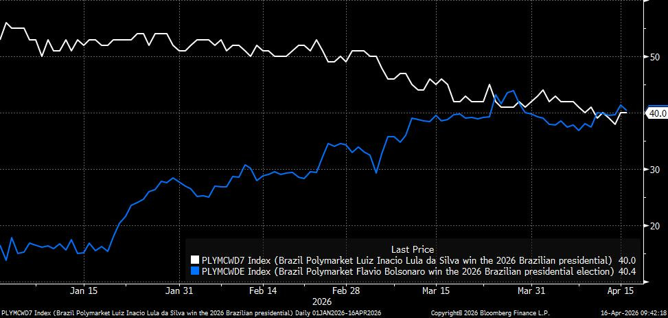 A BTG Pactual/Nexus poll published at the end of March showed Brazil’s President Lula da Silva and Senator Flavio Bolsonaro tied at 46% in a potential run-off in the October elections. When you consider that Bolsonaro only entered the race in December and had an assigned probability of winning of 15% in the middle of January, the poll highlighted a trend that had gone under the radar for much of Q1, namely that Bolsonaro is now seen as the main challenger to Lula.