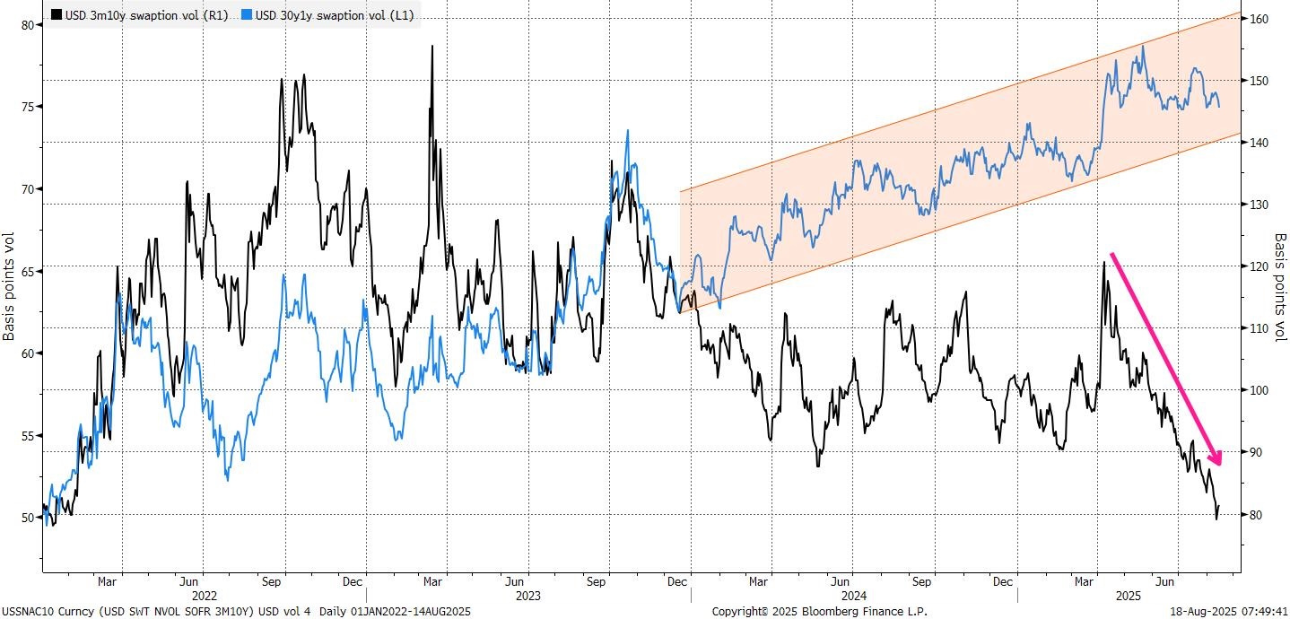 Protection is cheap, positioning is light, and with vol sellers in control, the risk is getting caught flat-footed into the Autumn calendar. We’re not looking to overweight the hedge book, but a small percentage allocation makes sense, buying insurance when it’s affordable, not when it’s needed.