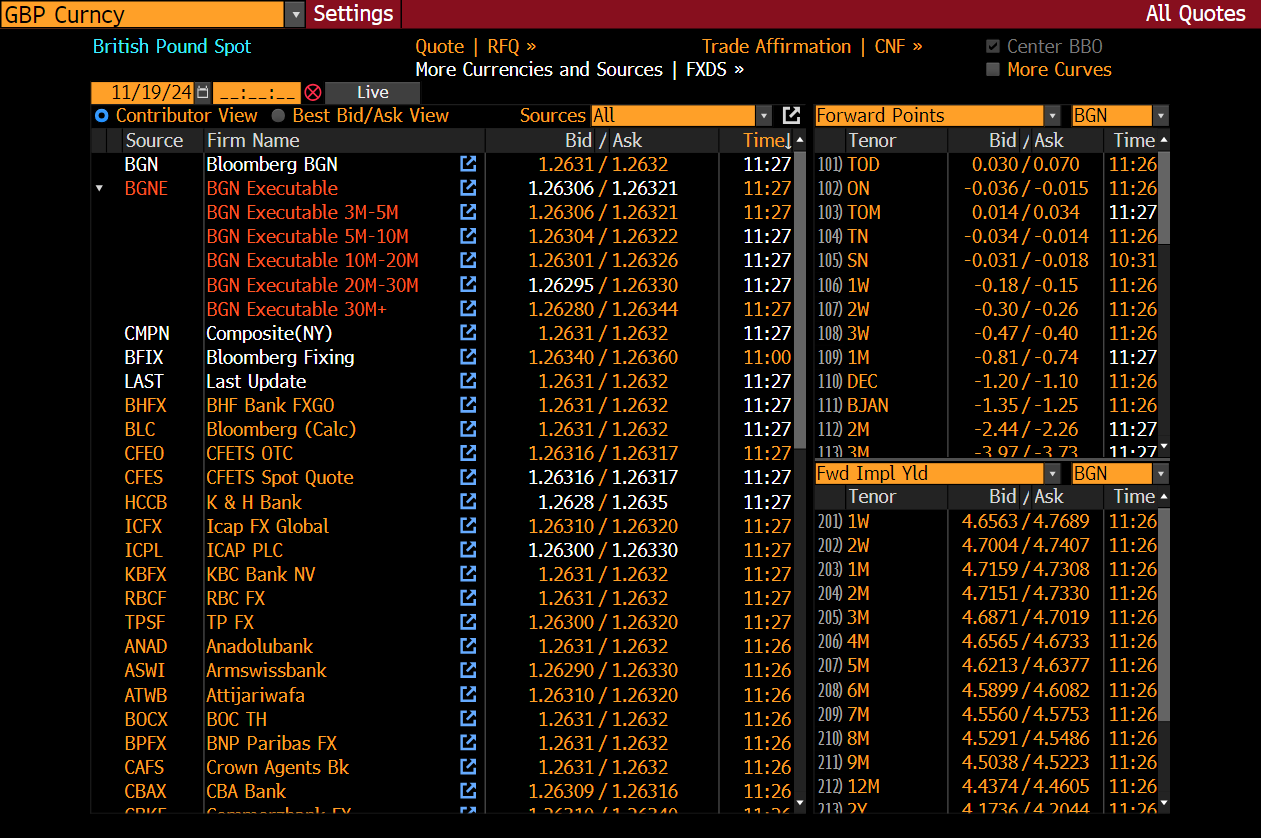 Given the rise in recent years of eFX (electronic FX), the price arbitrage between different providers is minimal, especially when we’re talking about G10 major currency pairs (for the purpose of this primer we’ll be referring to GBP/USD). The bid is where an investor can sell the base currency (i.e GBP) and the offer is where you can buy the base at.