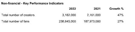 This momentum has continued since then and even accelerated when we’ve been out of the pandemic. In the past year alone the number of creators rose by 47% to almost 3.2 million, while the number of users rose by 27% to close to 239 million.