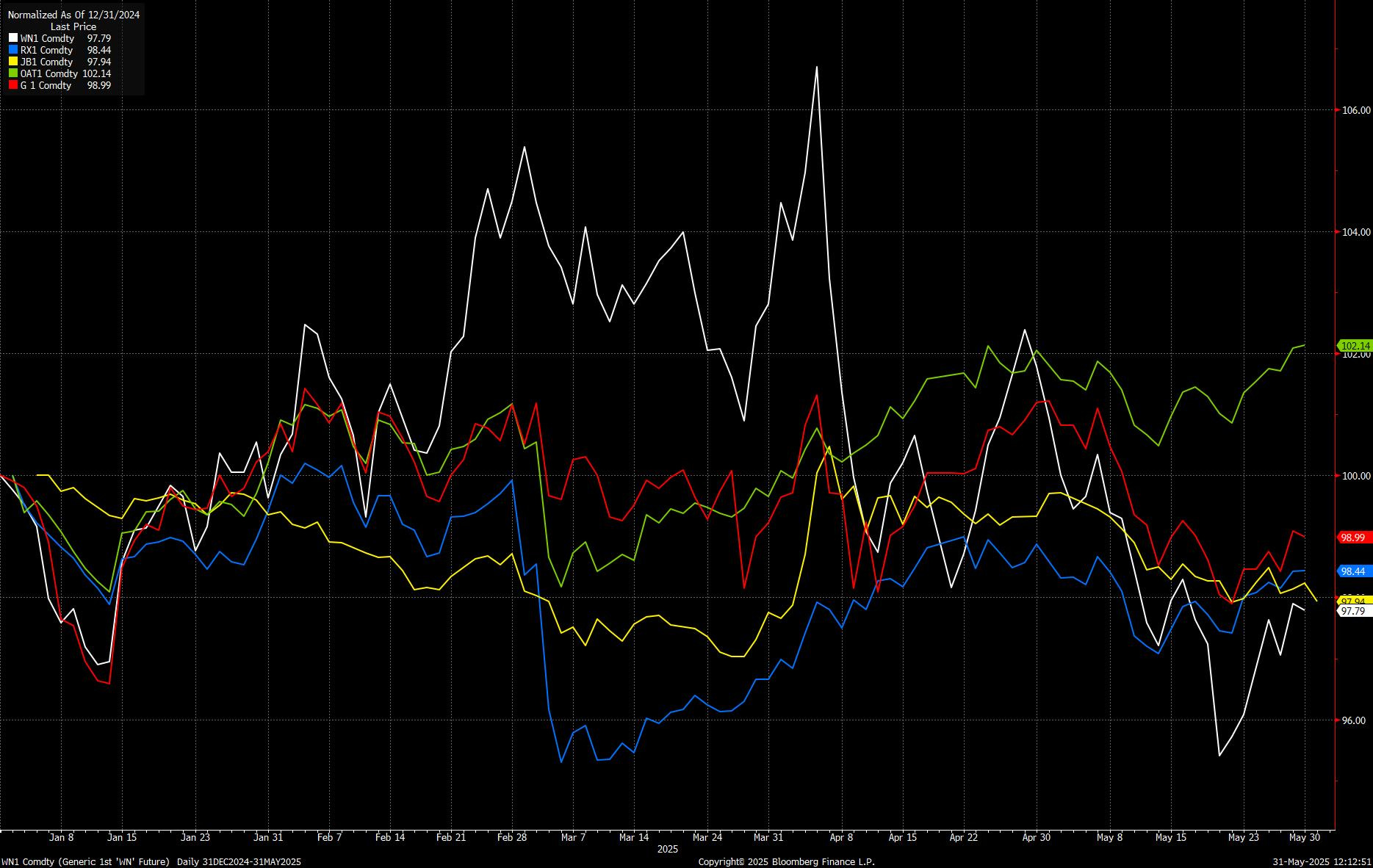 - Europe (Bunds, OATs, Gilts): Eurozone and UK sovereigns look set to continue outperforming Treasuries. The market is still wary of political tail risks (tariffs, elections), but the relative calm in inflation expectations and a less aggressive fiscal backdrop should keep European curves better bid versus the US.