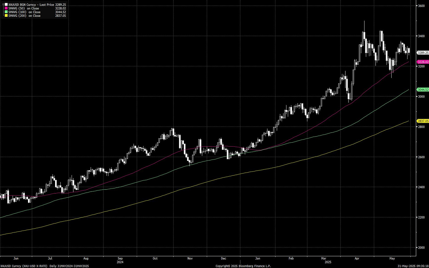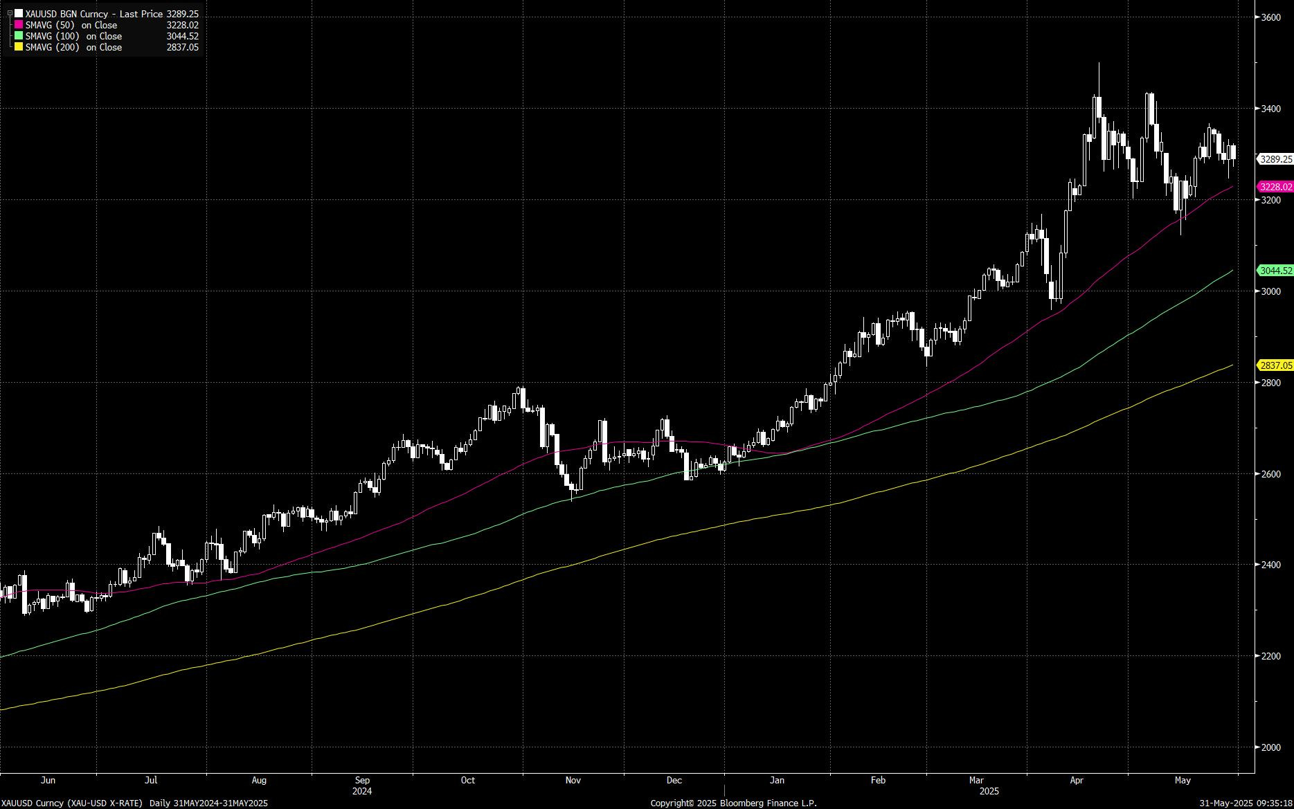 Gold has turned cautious since April after hitting a peak of ~$3500 and trading back down around the $3300 level. However, recent sell-offs have been well supported by the 50-day Moving Average illustrated in the below chart.