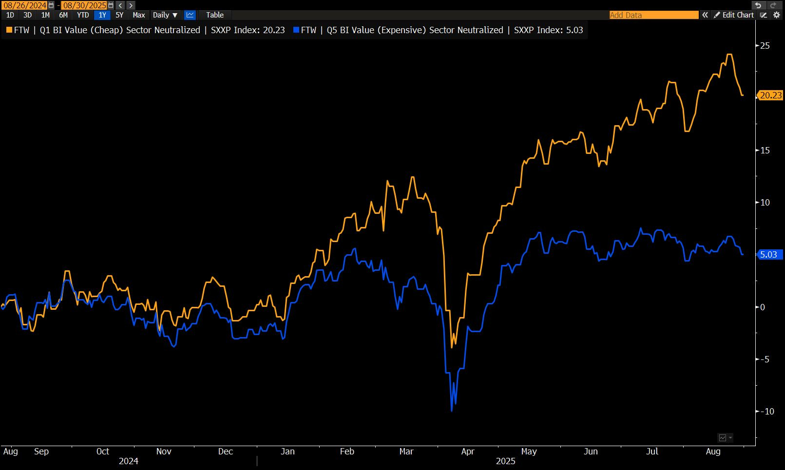 In Europe, the tariff story is already creating fractures. Major indices have diverged sharply over the past month, with correlations dropping to decade lows. This reflects more country-specific dynamics, from energy resilience in the UK to industrial vulnerability in Germany. The European value factor has also been a standout, materially outperforming its US counterpart over the past year. That may continue if the region’s domestic rotation persists, but it leaves benchmarks more vulnerable to idiosyncratic shocks and uneven policy responses as trade pressures escalate.