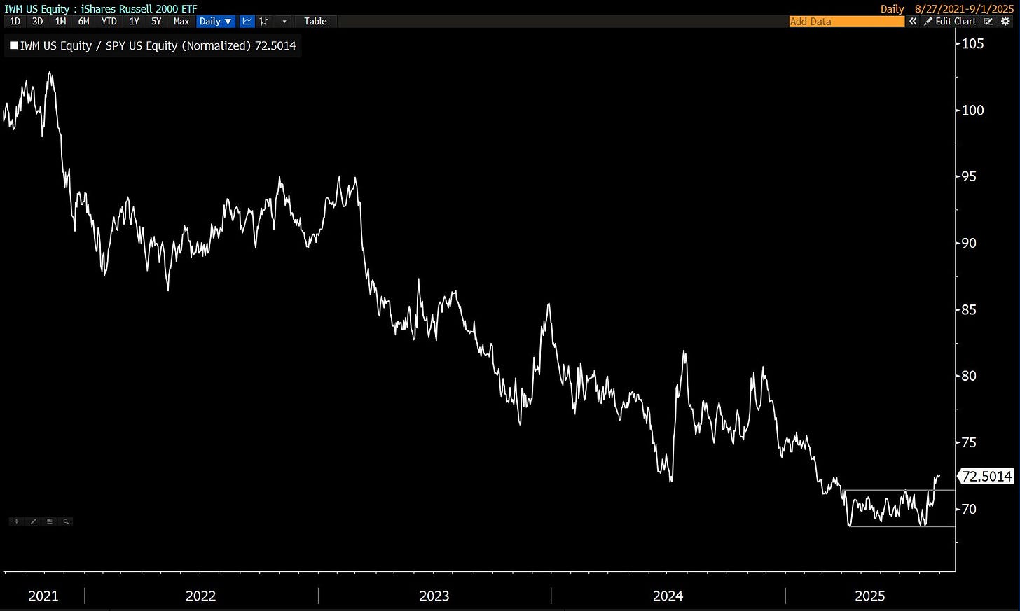 In the US, the S&P 500 closed August with fresh all-time highs, supported by improving breadth. Nearly 70% of constituents now trade above their 50- and 200-day averages, suggesting the advance is healthier than the narrow leadership that defined the first half of the year. Still, the sustainability of that breadth depends on cyclical participation. Recent manufacturing PMI strength and capital goods orders hint at a potential turn, which could support small caps and industrials in September.
