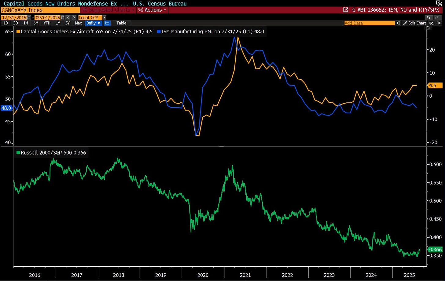 History suggests that once ISM manufacturing turns back into expansion, small caps outperform over the next 12 months—a dynamic to watch if the recovery takes hold.