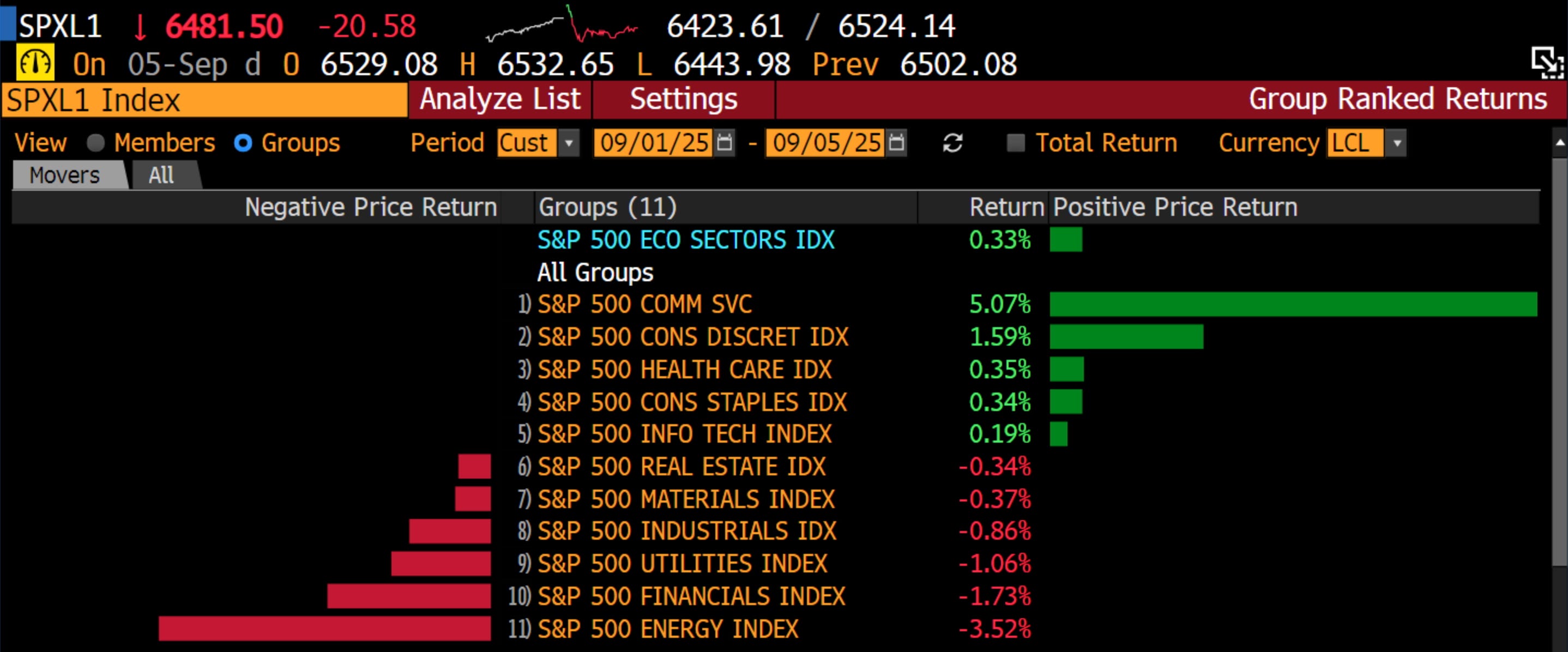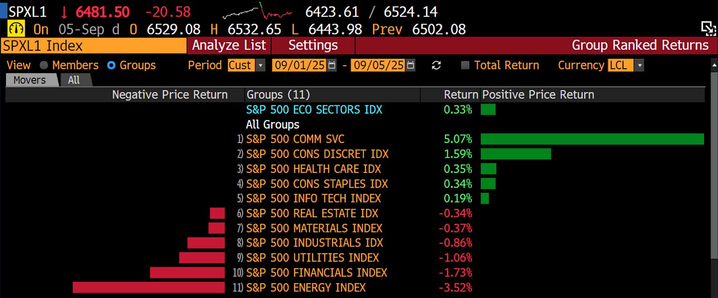 Macro data added fuel, with ISM Services and a weak NFP print reinforcing the case for a September Fed cut. Profit taking into Friday capped the move, leaving Energy and Financials lagging while tech carried the tape higher.