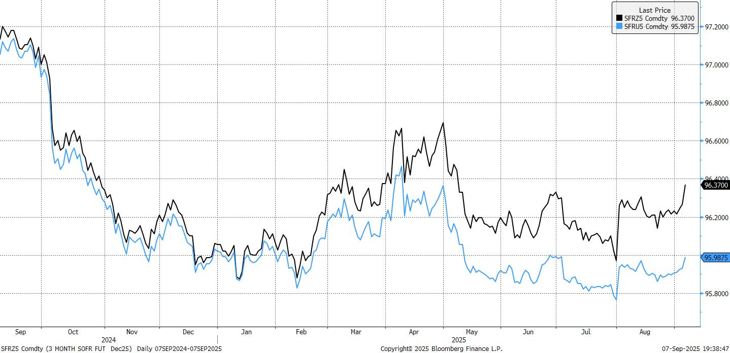 Market takeaway: Z5 overpricing three cuts into year-end is still a fade as the team sees it, but positioning for certainty this far out risks getting chopped up.