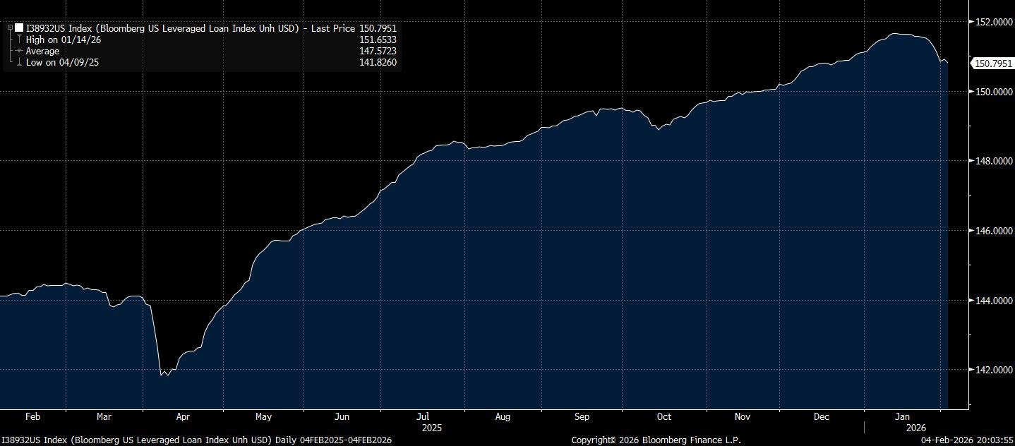 Anxiety about software has been simmering for months, but in recent weeks has boiled over into the leveraged-loan market, and this week the splash reached alternatives and business development companies (BDCs). Shares of BDCs, which pool private credit loans, have also hit multi-year lows as investors assess the level of software exposure in their portfolios. The lack of reporting means that while shares may trade daily, their portfolio health is only updated quarterly.