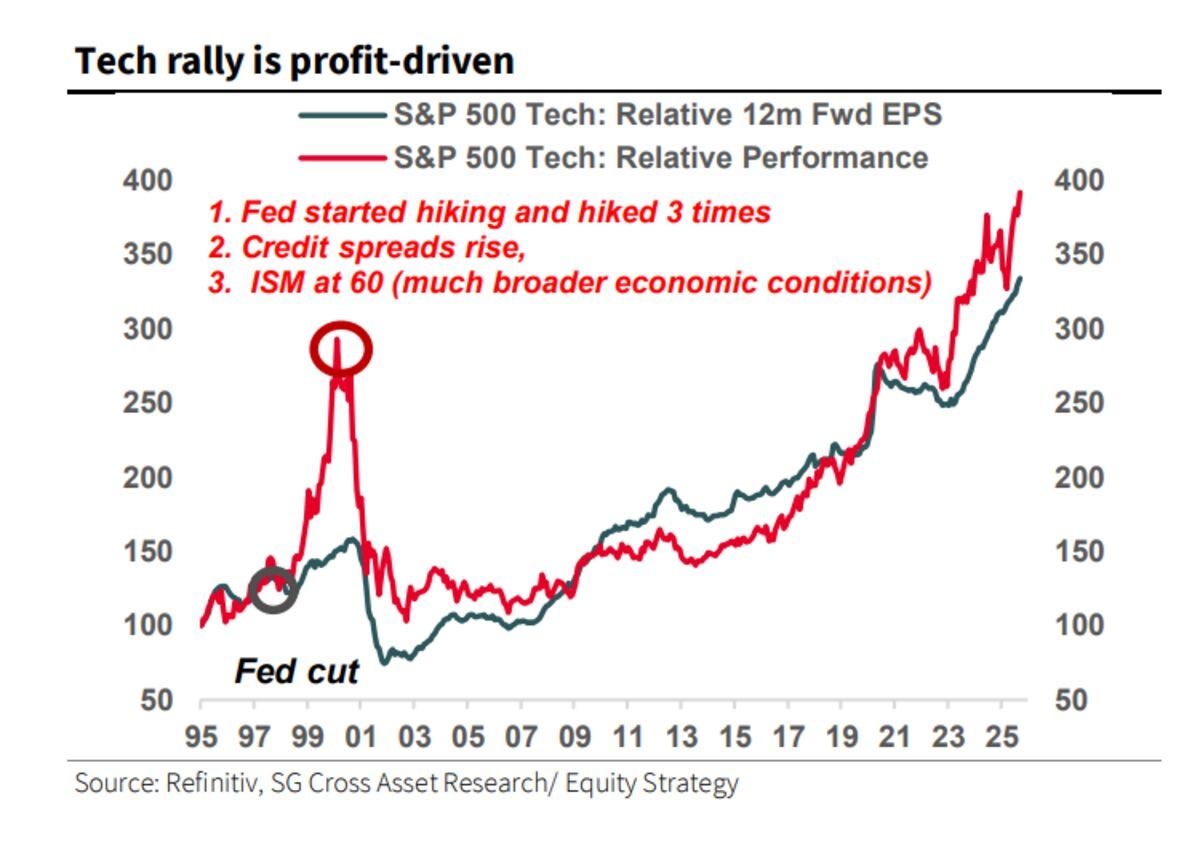 Still, the week wasn’t just about tariffs or tech. Beneath the surface, an emerging debate took hold: Is the AI trade morphing into bubble territory? Several strategists drew parallels with the dot-com era as mega-cap valuations stretched further, though SocGen pushed back, arguing the rally still reflects “earnings strength rather than speculative excess.” That confidence was tested on Friday, when the entire complex sold off sharply.