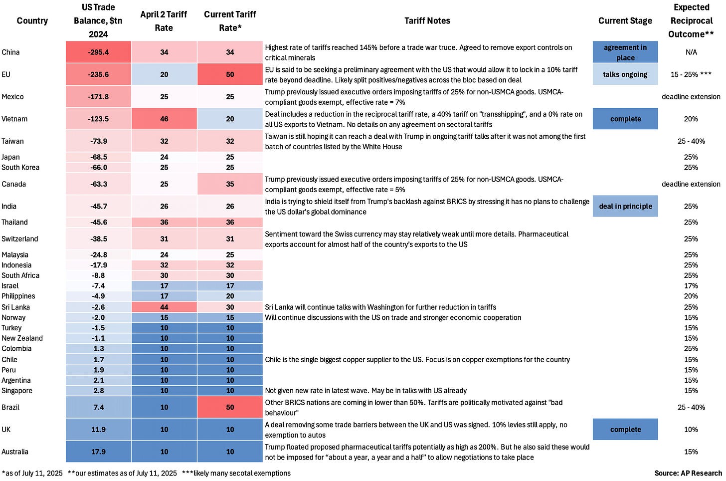 Tariff Check-InA short note on where we are in the current trade and tariff regime.AP ResearchJul 11, 2025∙ Paid1217ShareThis post is for paid subscribersSubscribeAlready a paid subscriber? Sign inPreviousNext