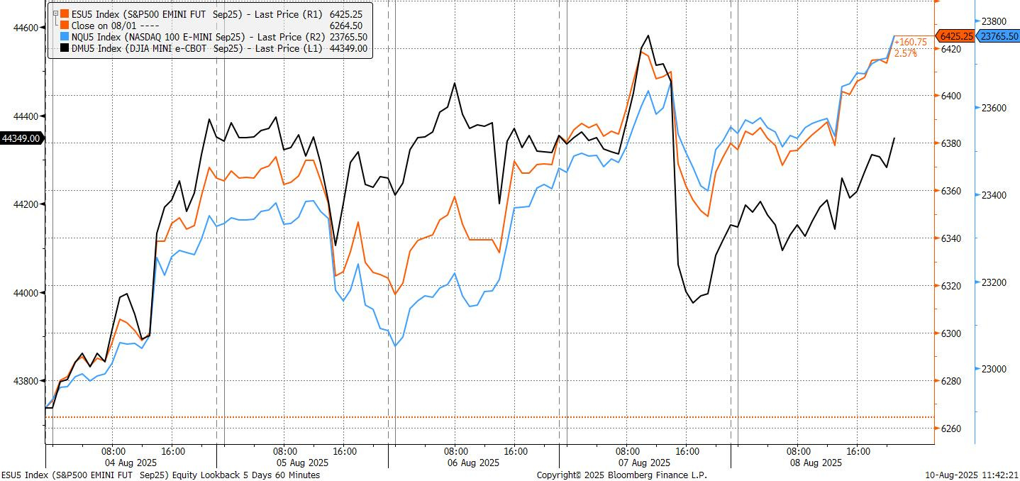 In other markets, the dollar edged lower, retracing part of last week’s NFP-driven gains. The Treasury curve finished little changed, though there was a slight sell-off in the belly and all three major auctions (3-year, 10-year, and 30-year) tailed, an unusual occurrence. Gold futures ended the week at a record after the administration unexpectedly ruled that gold bars would be subject to tariffs, reversing assumptions of an exemption.