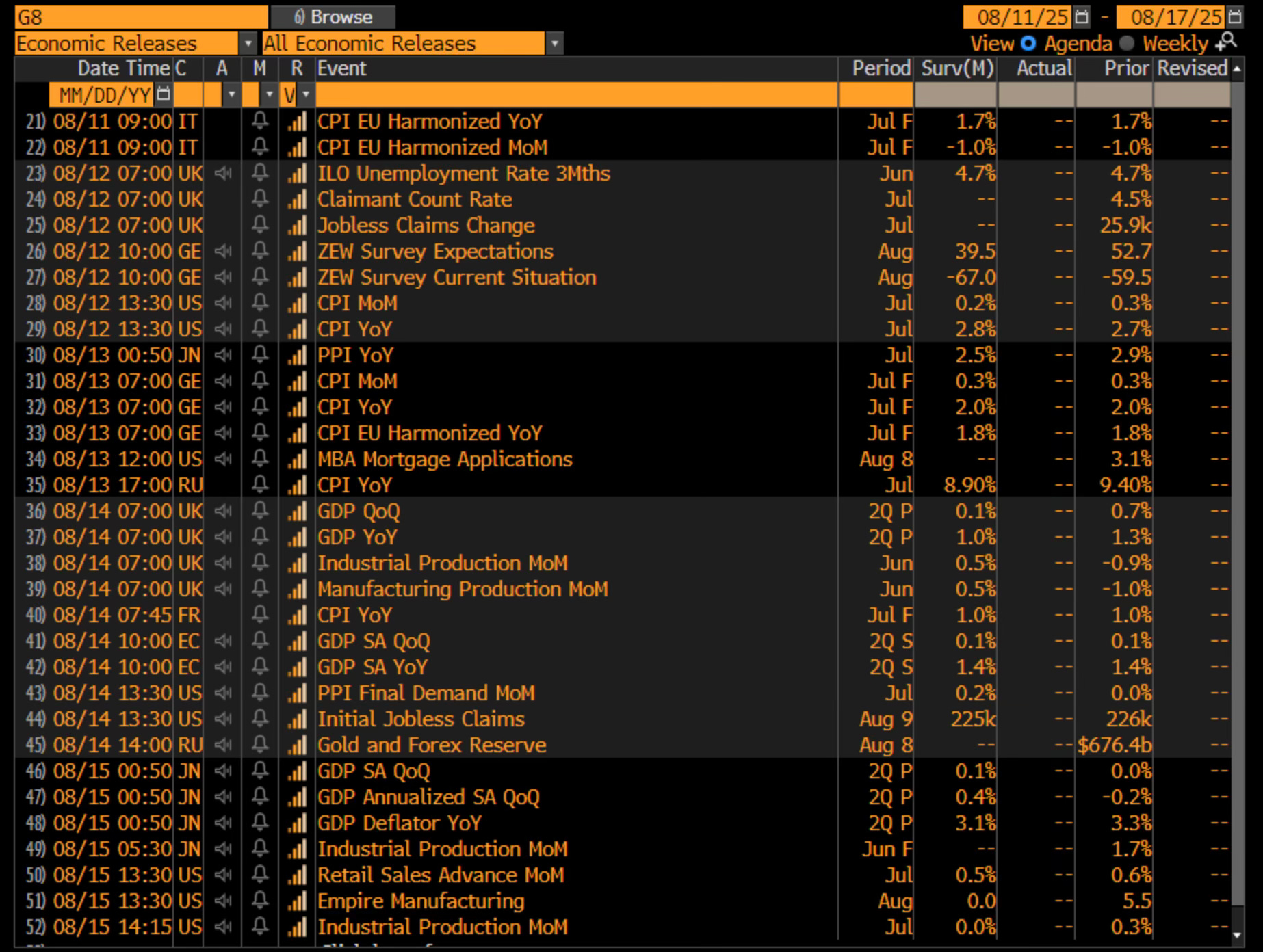 Among emerging markets, China’s Friday data dump—retail sales, industrial production, and fixed asset investment—will give the clearest read yet on July’s economic momentum. The release comes as Beijing weighs whether to extend its trade truce with Washington.