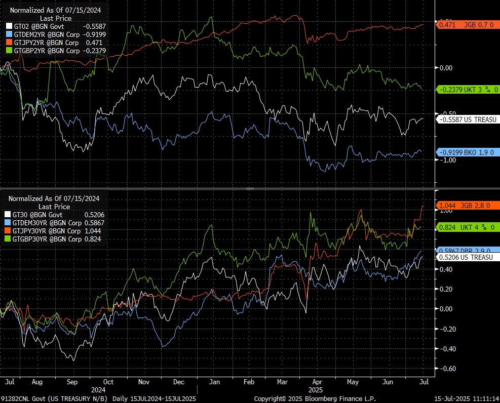 Across the globe, policymakers are leaning into spending. The front end is all over the place across markets, while the long-end bond distaste is global.