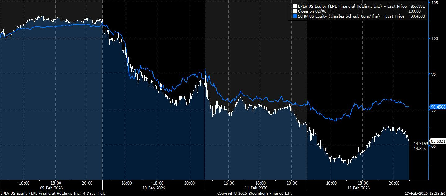 Two companies we noted that took a hit (which has been exacerbated as the week has gone on) are LPL Financial and Charles Schwab.
