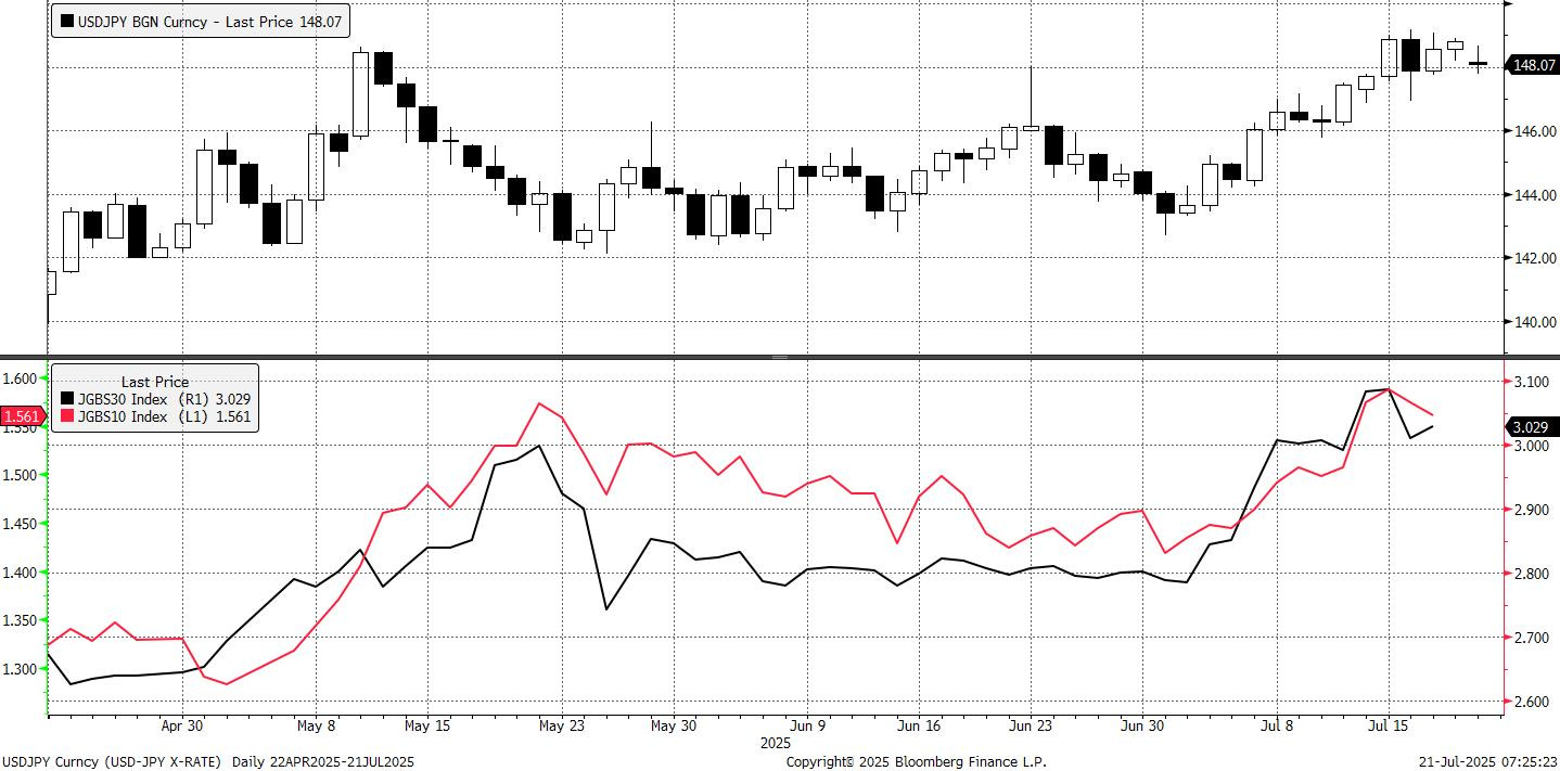 Japan is a major focus this week, with Prime Minister Ishiba’s coalition losing its majority. A change in government may delay trade talks with the US and lead to calls for aggressive fiscal easing, including tax cuts that would complicate the BOJ’s path to normalisation. Deputy Governor Uchida is due to speak on Wednesday. Friday’s Tokyo CPI is expected to remain well above target, reinforcing the BOJ’s cautious stance. The Finance Ministry auctions 40-year JGBs on Wednesday, with investor demand likely to be shaped by election results and debt trajectory concerns.