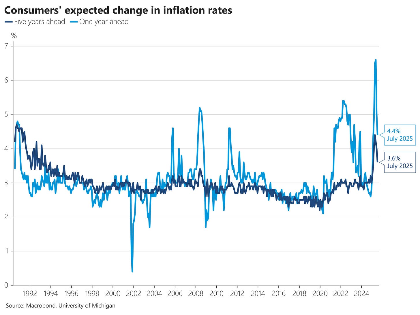 Economic data gave the bulls cover. Core CPI and PPI both came in softer than expected, and retail sales surprised to the upside. Inflation expectations continued to drift lower, with the Michigan 1-year gauge hitting its lowest since February. In response, the OIS curve now fully prices no action in July, leaving October as the earliest plausible liftoff for cuts.