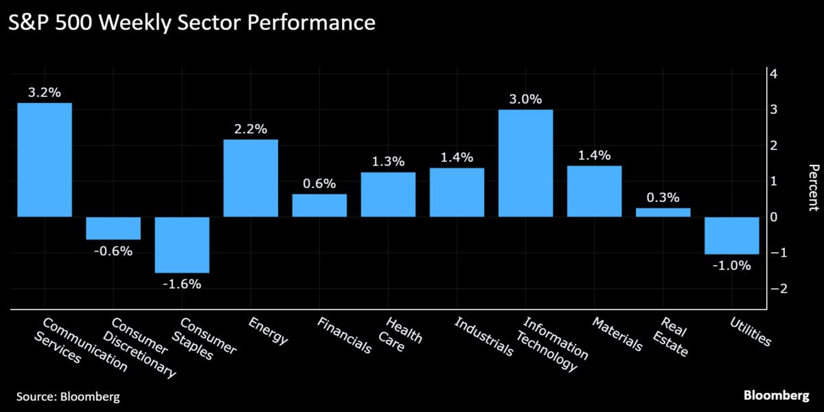 US equity markets held modest gains last week despite a swirl of trade and political headlines. The S&P 500 advanced 1.5%, with tech and communication services leading as investors embraced calmer markets and better tariff news. Micron and ON Semiconductor soared, lifted by improving AI capex demand and easing trade tensions. Notably, the S&P 500 saw six consecutive days of sub-0.6% daily moves through Thursday, its longest calm streak since December.