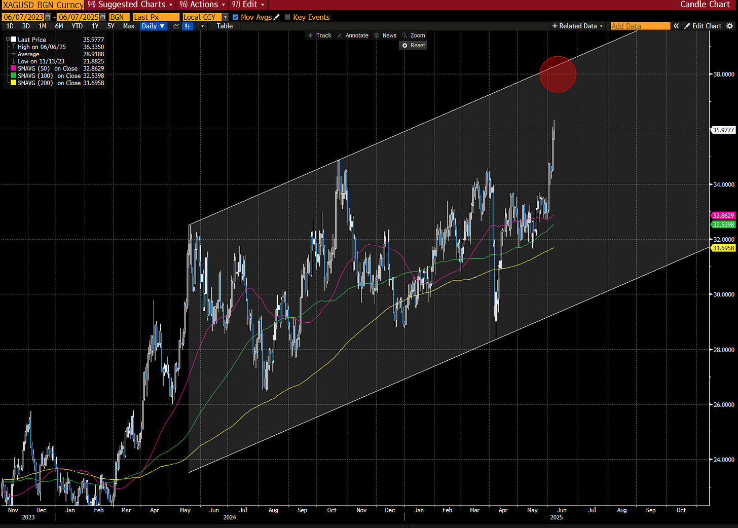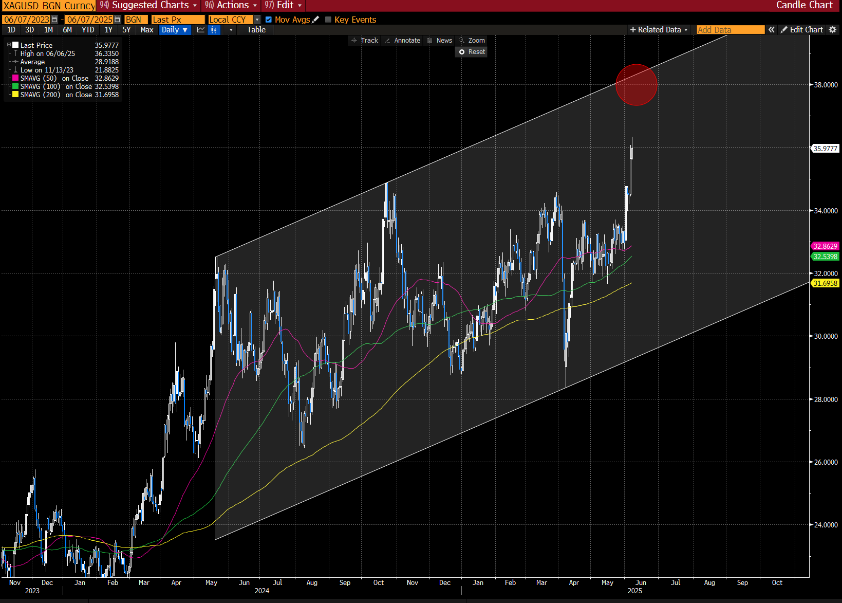 We feel there’s potential for silver to keep running towards $38 in the coming weeks, as long positioning isn’t that high, and plenty likely aren’t onboard yet.