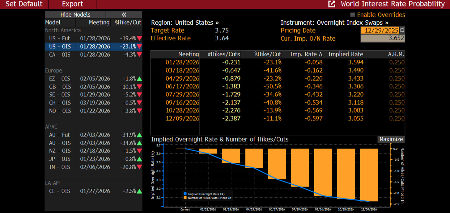 Treasuries were largely unchanged on the week. OIS pricing continues to anchor expectations around the June 2026 FOMC meeting for the next rate cut, with roughly 34bp priced.